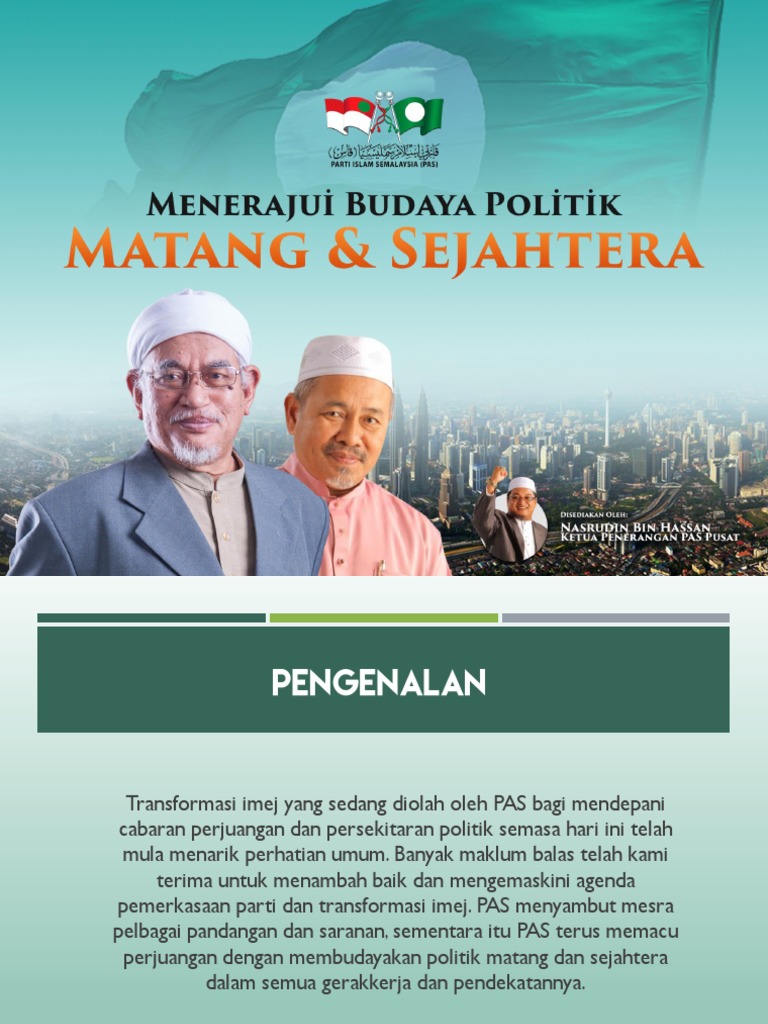 Muqaddimah transformasi imej yang sedang diolah oleh pas bagi mendepani cabaran perjuangan dan persekitaran politik semasa hari ini telah mula menarik perhatian umum. Semoga usaha kita dalam memahami ijtihad politik demi kesejahteraan islam dan ummah diberkati oleh allah swt. Dapatkan sekarang naskhah budaya politik matang dan sejahtera cetakan kedua dengan diskaun sebanyak 20. Budaya politik matang dan sejahtera.