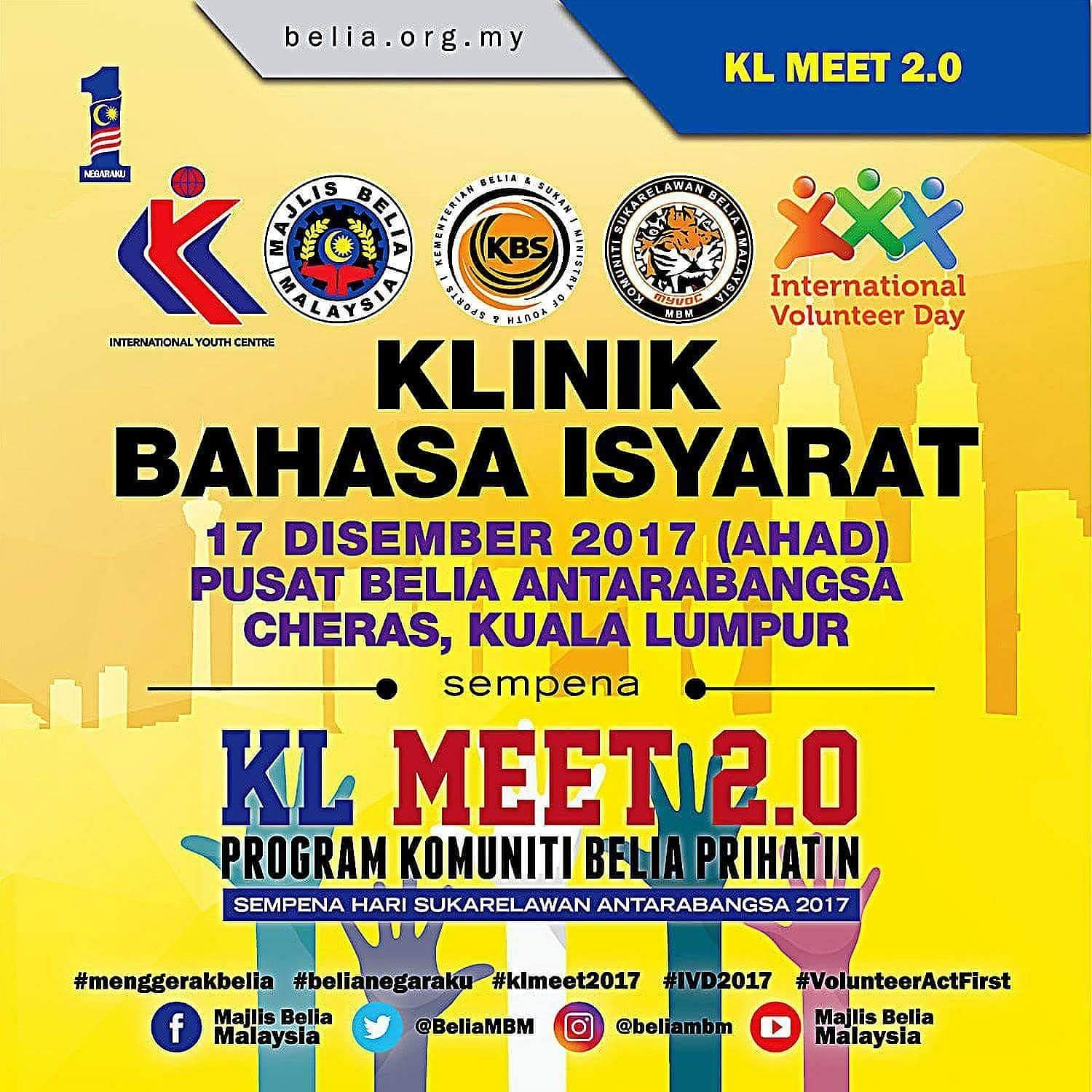 Mbm On Twitter Kl Meet 2 0 Program Komuniti Belia Prihatin Klinik Bahasa Isyarat Sempena Hari Sukarelawan Antarabangsa 2017 17 Disember 2017 9pg 12tgh Pusat Belia Antarabangsa Cheras Kuala Lumpur Menggerakbelia